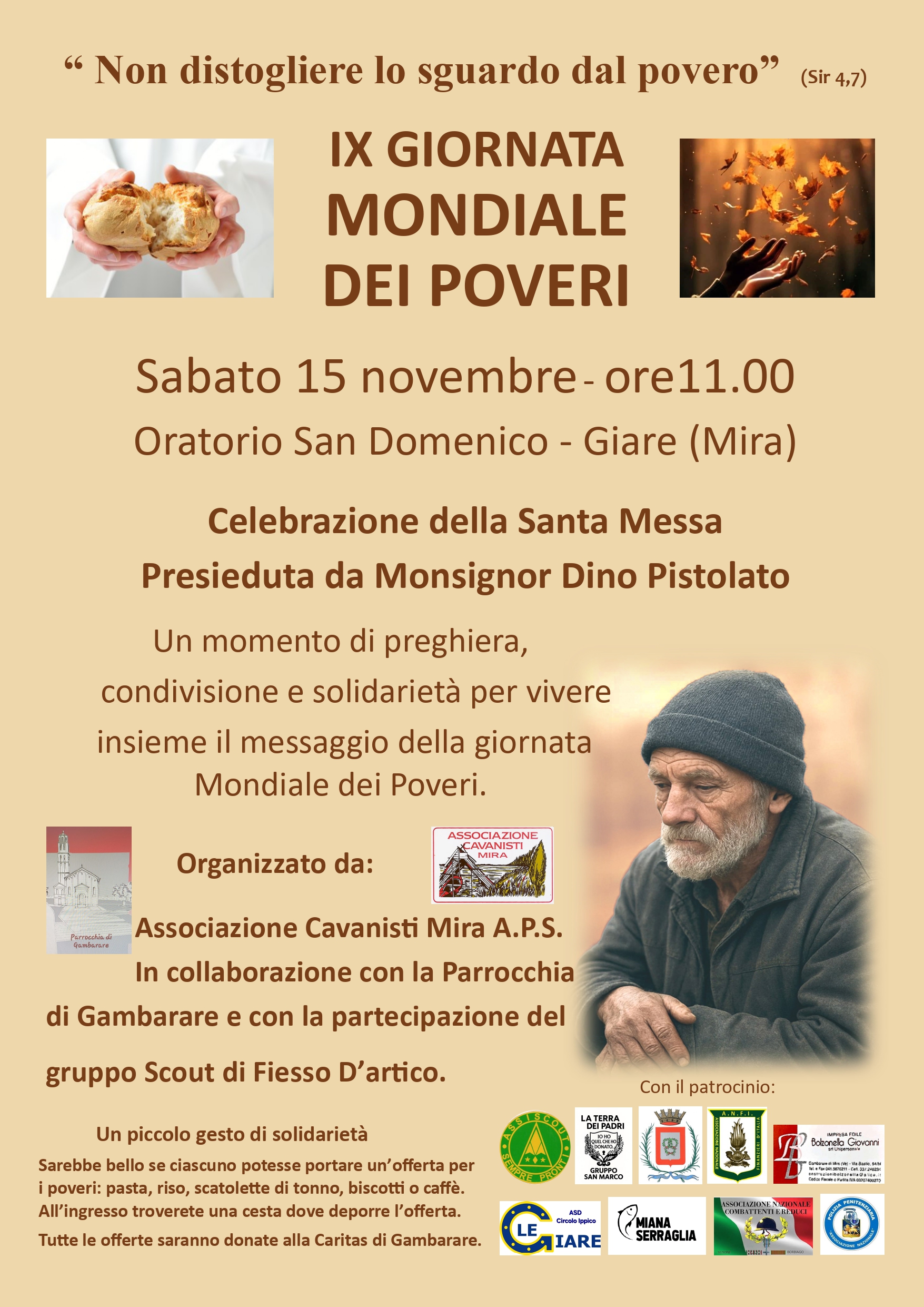 L'Associazione Cavanisti A.P.S. in collaborazione con la Parrocchia di Gambarare e la partecipazione del Gruppo Scout di Fiesso D'Artico, propongono un momento di preghiera, condivisione e solidarietà dedicato alla Giornata Mondiale dei Poveri.