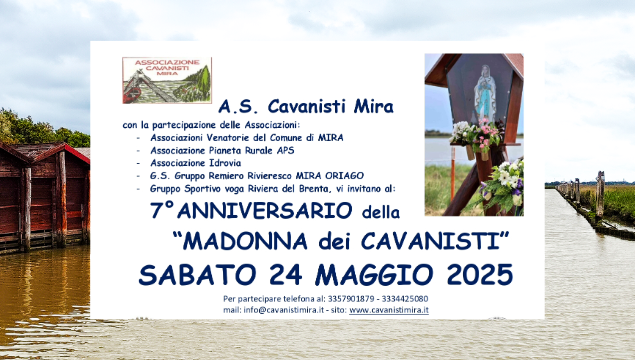 L'appuntamento giunto alla sua settima edizione è per le ore13.45 di sabato 24 maggio, il corteo di barche partirà alle ore 14.00 per raggiungere il Capitello della "Madonna dei Cavanisti", la cerimonia di rientro è prevista per le ore 16.00.